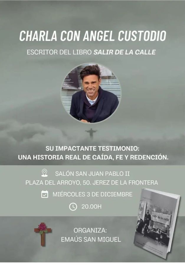 El próximo miércoles 3 de diciembre a las 20:00 horas tendrá lugar en el Auditorio San Juan Pablo II, en el obispado de Jerez sito en Plaza del Arroyo de Jerez, una charla-testimonio a cargo de Ángel Custodio, autor del libro Salir de la calle.