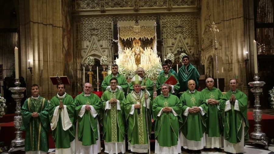 También destacó lo importante de la presencia de los cofrades en el templo catedralicio, «portando la fe y la devoción de vuestros barrios, parroquias y pueblos, es una imagen viva de la Iglesia que camina unida hacia la casa del Padre” y recordó que el año jubilar es «un don extraordinario que la Iglesia ofrece a sus hijos. El jubileo -apuntó- nos invita a la conversión, a la renovación interior, al perdón y a la misericordia. Es un año de gracia en el que se nos ofrece la indulgencia plenaria, signo sacramental de la misericordia de Dios que borra nuestras culpas y nos fortalece en el camino de la fe”, subrayando que la Archidiócesis de Sevilla «no se puede comprender sin el latido profundo de sus hermandades y cofradías. Son cauces privilegiados de fe y de vida cristiana» y que a través de ellas «se transmiten la devoción a Cristo, a la Virgen María y a los santos; se cultiva la caridad con los más pobres; se cuida la formación cristiana; se promueve la fraternidad y se contribuye al bien común”. Por último, pidió a los cofrades que fueran “testigos de Cristo desde la humildad, que vuestras procesiones sean auténticas manifestaciones de fe, que nunca se conviertan en meras expresiones artísticas o culturales; que el testimonio de vuestra vida brille por su coherencia con el Evangelio”.
