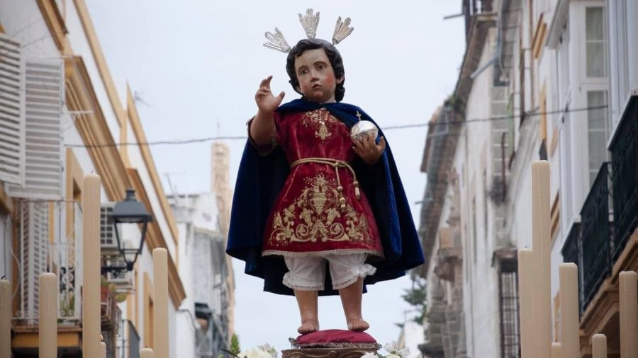 El Niño Jesús de Praga de la Hermandad del Huerto procesiona en El Puerto de Santa María
