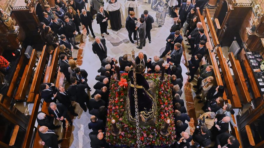 Tras ser suspendido el traslado previsto el pasado fin de semana como consecuencia de las lluvias caídas en Sevilla estos días, finalmente el Señor de las Penas pudo ser trasladado desde San Vicente al Convento Carmelita del Buen Suceso el pasado martes, para presidir allí los actos conmemorativos del CL aniversario de la fundación de la Hermandad.