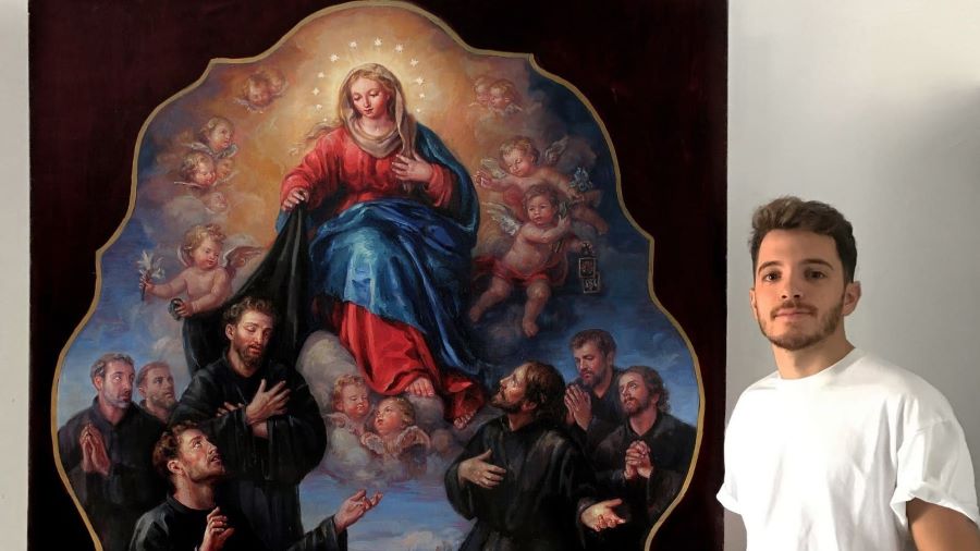 El cartelista, Rubén Terriza González nace en la Puebla del Río en 1996. y es artista plástico, enfocado en pintura y escultura. Entre sus obras destacan el cartel de la Navidad de Sevilla 2021, cartel de la Semana Santa de Osuna 2021, cartel de la Sagrada Cena de Málaga 2022, cartel de las Glorias de Granada 2023, cartel de la Esperanza de Triana 2019, cartel del Carmen de San Cayetano 2019, cartel de las Glorias de Córdoba 2018, cartel de la Juventud de Triana 2017, cartel de la Divina Pastora de Capuchinos 2017, portada del boletín del Museo en 2017 y del boletín de Montesión en 2021 o colaboraciones en revistas como Pasión en Sevilla. En 2017, realiza la pintura del camarín de la Divina Pastora de Triana y en 2020, pinta la Gloria para el techo de palio de la Hermandad Servita de Los Palacios y Villafranca. Asimismo, ha realizado esculturas como una de las ovejas de la Divina Pastora de Capuchinos de Sevilla y particulares.