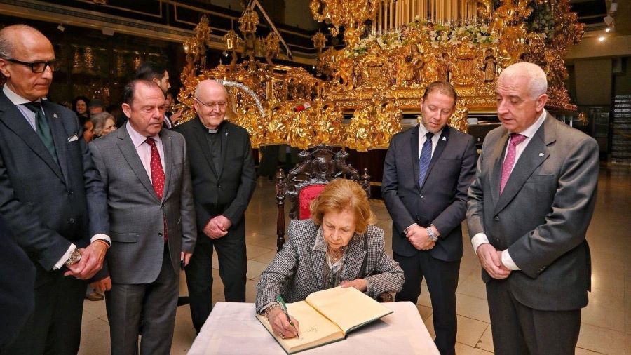 La devoción y cercanía de Su Majestad la Reina Doña Sofía quedó especialmente patente el Miércoles Santo de 2024, cuando visitó la Casa Hermandad, conoció de cerca el patrimonio de la corporación y veneró a la Virgen en su trono de salida procesional.