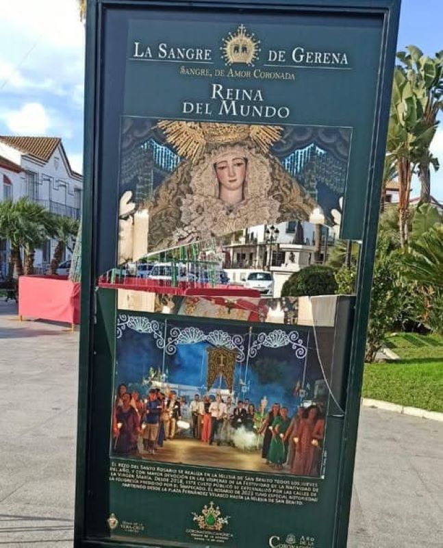 La Hermandad de la Vera Cruz de Gerena, en Sevilla, ha emitido un comunicado mediante el que expresa su malestar por el vandalismo continuado contra la marquesinas instaladas en el pueblo con motivo de la Coronación Canónica de María Santísima de la Sangre.