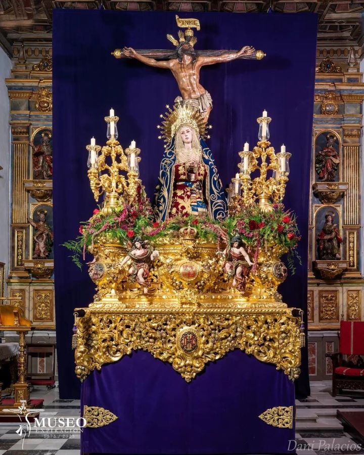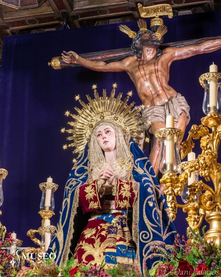 Los titulares de la cofradía del Museo, el Santísimo Cristo de la Expiración y María Santísima de las Aguas, van a procesionar en el paso del Cristo formando el Stabat Mater, representación de la Virgen Dolorosa al pie de la cruz antes su Hijo, una estampa que se recupera con motivo del aniversario de la Fundación de la Hermandad y que desde 1921 no se contemplaba en Sevilla.