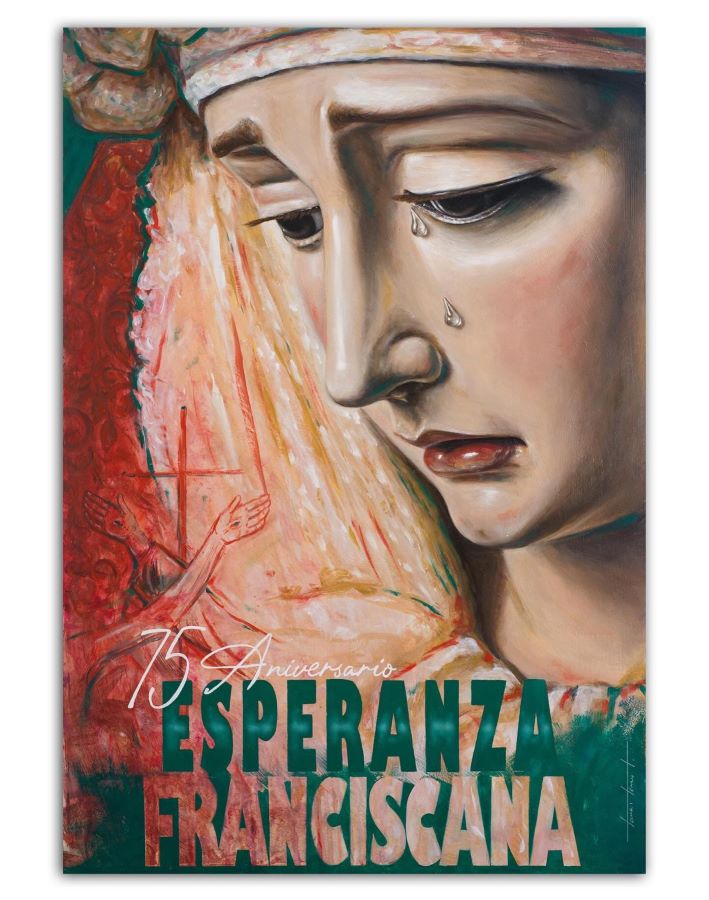 La Hermandad de las Cinco Llagas ha presentado el cartel conmemorativo del LXXV Aniversario de la bendición de María Santísima de la Esperanza, basado en un oleo sobra tabla, obra del artista jerezano Tomás Terán Torrejón.